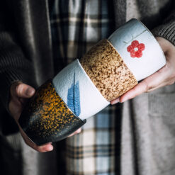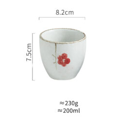 Tämä luovasti muotoiltu japanilaistyylinen teekuppi yhdistää yksinkertaisuuden ja eleganssin alilasitetun (underglaze) koristepinnan ansiosta. Menetelmä tekee kuvioista kestäviä, kauniisti upotettuja lasitteen alle – ajattoman esteettinen ja käytännöllinen valinta teen ystäville.